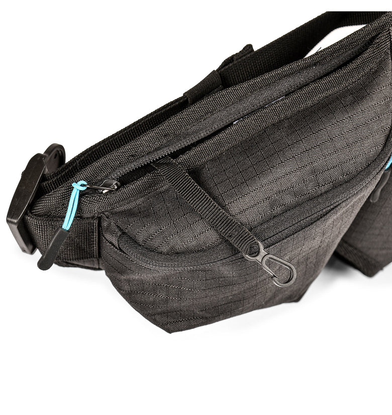 The BOKKA is a great multi-sport tool, a minimalist and lightweight hip pack for a wide range of four-season activities. Carefully designed, you will find a soft and secure pocket for your mobile with direct access, a compartment for food or multiple objects necessary for your activities large enough to transport a spare tube and of course a 45 degree bottle holder that allows easy and quick access to the bottle.